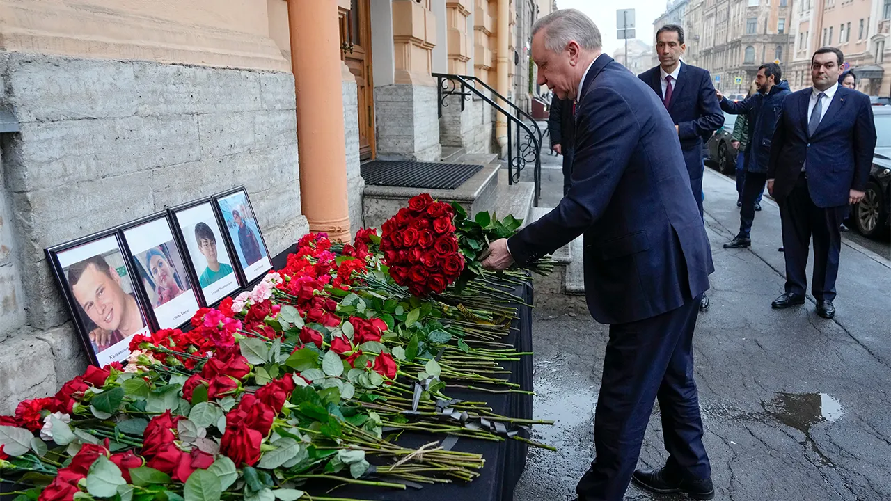 St. Petersburg Governor Alexander Beglov placed flowers in memory of the crash victims at the Azerbaijani Consulate General in St. Petersburg, Russia, Thursday, December 26, 2024. (AP Photo/Dmitri Lovetsky)