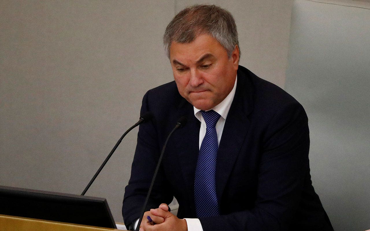 On September 26, 2018, the State Duma in Moscow, Russia, votes on the pension reform bill, with Russian parliament speaker Vyacheslav Volodin in attendance. Russia now has grounds to follow the United States and confiscate Western assets. Volodin said on Monday that the Duma had passed a bill that would allow for the transfer of seized Russian assets to Ukraine. (Reuters/Sergey Kalpkin/File photo)