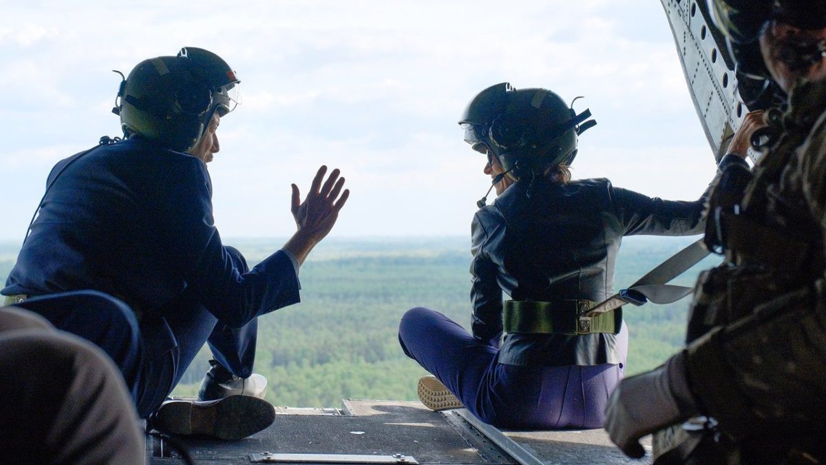 British Ambassador to Estonia Ross Allen (left) and Estonian Prime Minister Kaja Kalas (right) fly together from NATO exercises in southern Estonia on May 15, 2024. Both the UK and Estonia recently announced the arrest of individuals suspected of organizing subversive activities. of Russia. (AP Photo/Hendrik Osla)