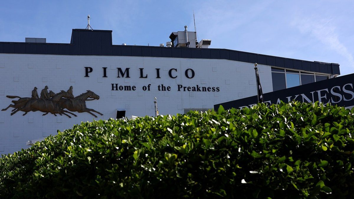 A general view of the entrance to Pimlico Race Course ahead of the 147th Preakness Stakes to be held in Baltimore, Maryland on May 18, 2022. (Rob Carr/Getty Images)