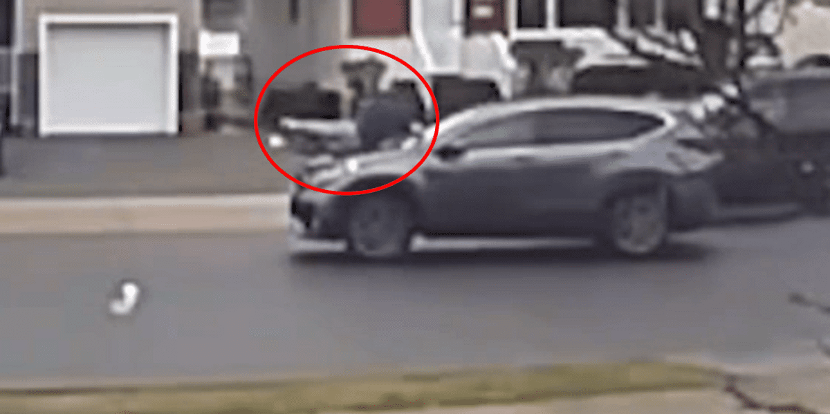 Shoeless man jumps on hood of moving car to chase thief