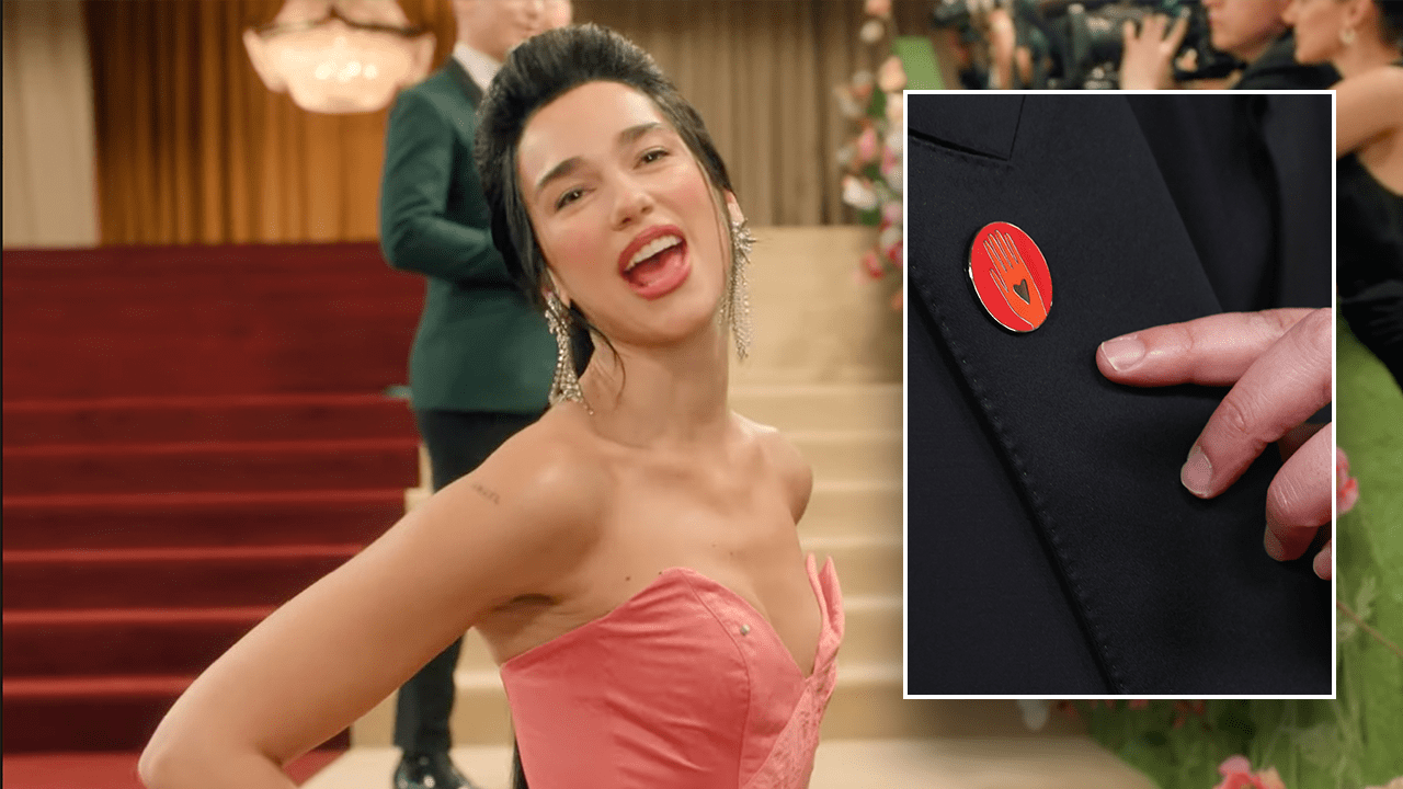“With the Teeny Tiny Statement Pin, you can say whatever you want without anyone knowing,” host Dua Lipa added.