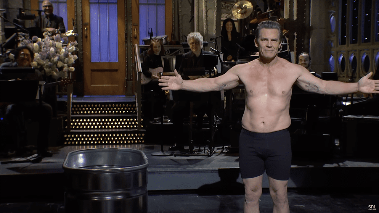 Actor Josh Brolin, who is hosting SNL for the third time, chose to strip down to his underwear to conclude his monologue. (SNL YouTube)