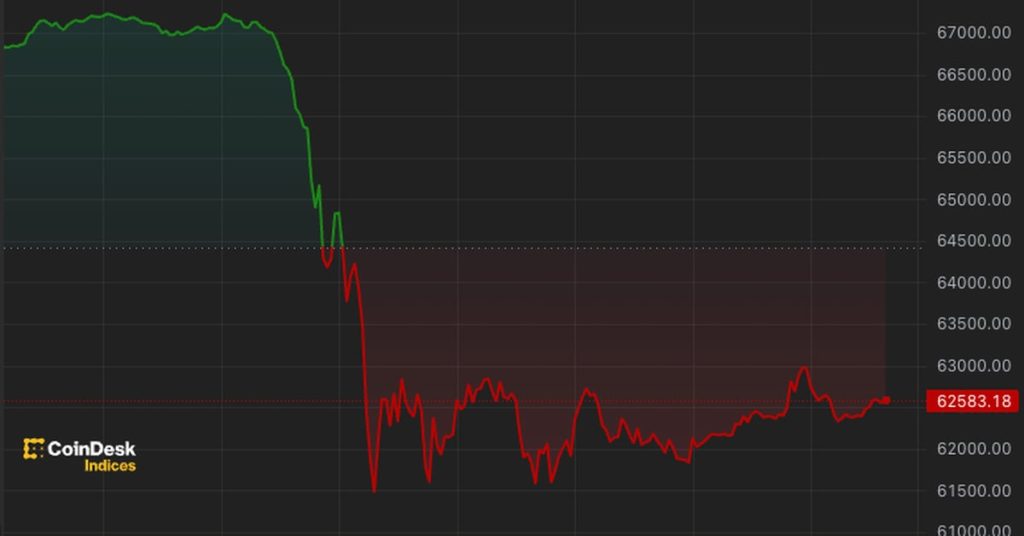 Bitcoin Falls 8%, Drops Below $62K Before Rebound – CoinDesk