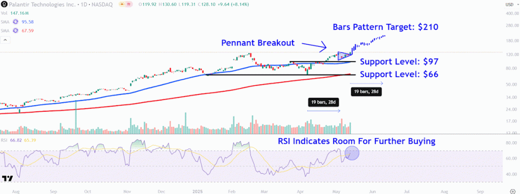Palantir shares have reached all-time highs for the second straight day, thanks to easing global trade tensions that have rekindled investor interest in AI stocks. The price movements within a pennant pattern suggest the stock is likely to continue its long-term upward trend. Bar Pattern Analysis indicates a potential target of about $210, with gains […]