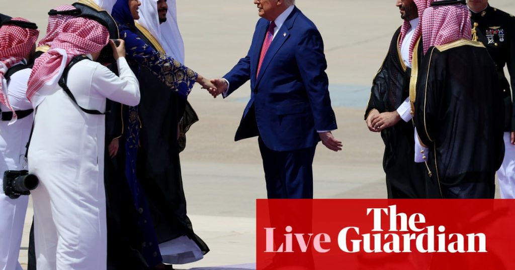 Donald Trump arrives in Saudi Arabia to start Gulf trip aimed at securing economic agreements.