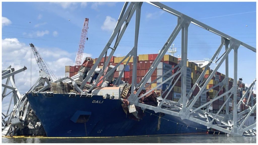 The steel frame of the Francis Scott Key Bridge rests on top of the container ship Dali after the bridge collapses, March 26, 2024, in Baltimore, Maryland. The bridge collapsed early on March 26 after being hit by the Singapore-flagged Dali, killing several people. Vehicles and people plunge into the frigid harbor below. The cause […]