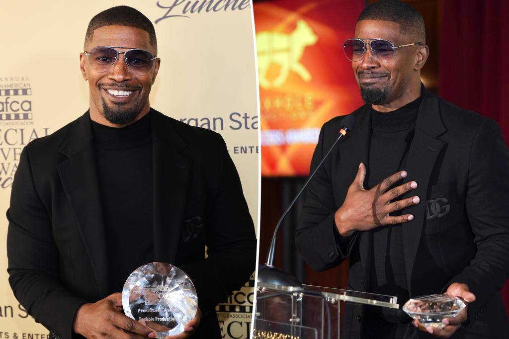 Jamie Foxx beams as he accepts award AAFCA Special Achievement nearly a year after mystery illness