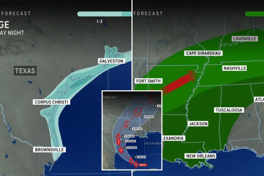Hurricane Beryl is expected to hit South Texas on Monday morning with sustained winds of up to 85 mph, and forecasters warned local residents on Friday to “exercise caution” for severe weather. The deadly storm, which has killed at least 10 people in the Caribbean over the past week, is forecast to make landfall near […]