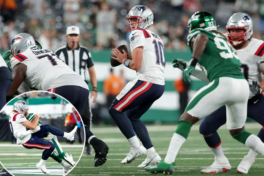 Patriots’ Drake Maye makes NFL debut in blowout loss to Jets