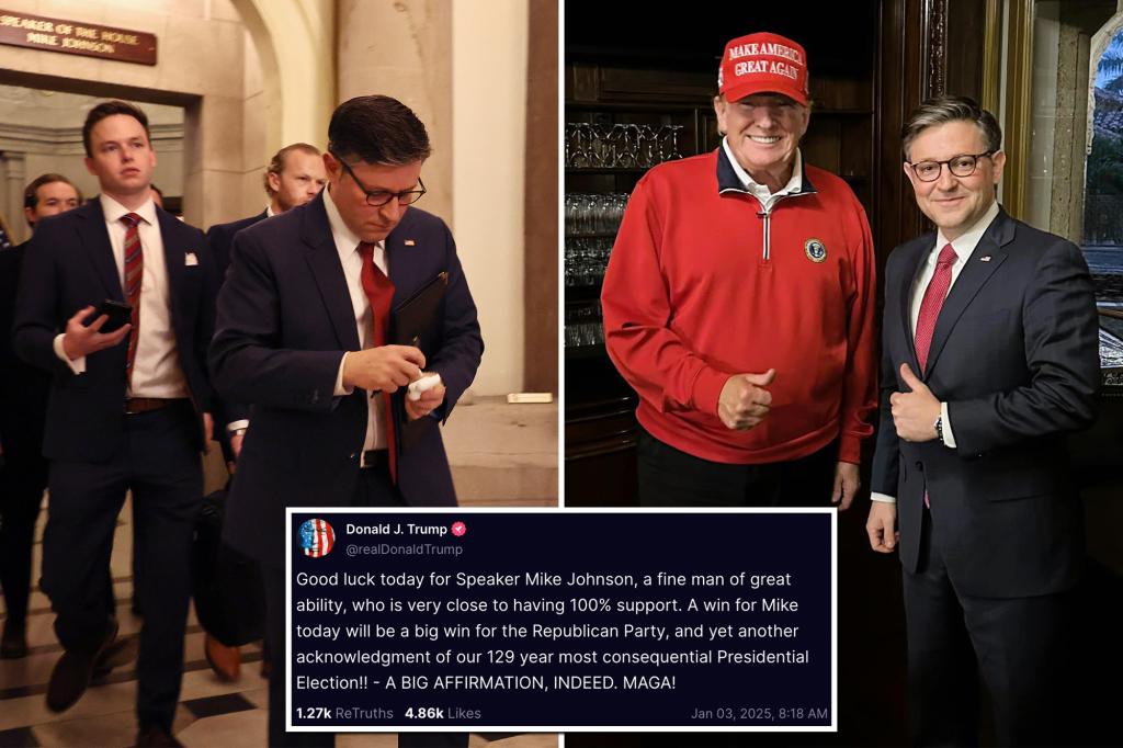 President-elect Donald Trump doubled down on his support for House Speaker Mike Johnson on Friday morning, hours before a high-stakes vote on whether to keep him in office. President Trump told Truth Social: “I wish Speaker of the House Mike Johnson the best of luck today. He's a great, talented guy, and his approval rating […]