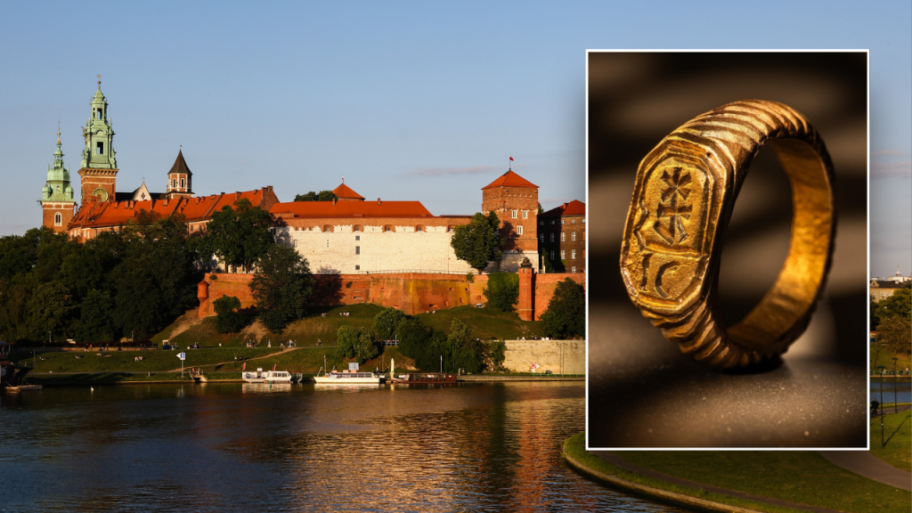 Ancient brass signet ring featuring unknown symbols discovered at Polish royal site