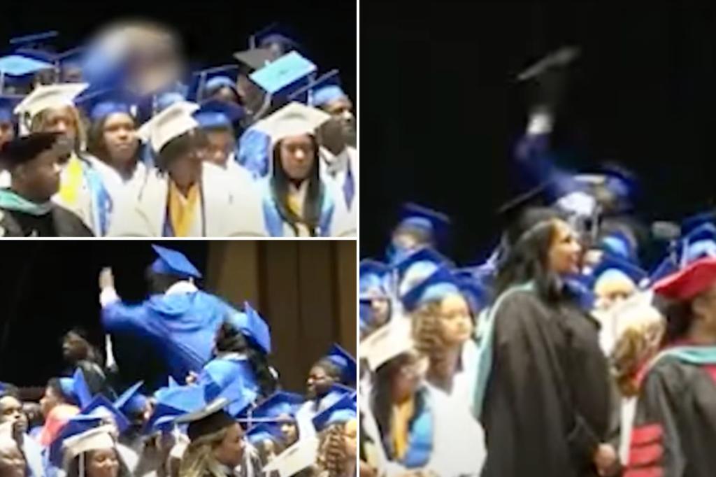A Tennessee high school graduate threw his diploma at another student as he was removed from a ceremony for displaying gang signs, sparking a fight on stage. The brawl between two Hamilton High School graduates was caught on camera Thursday night during a peer celebration inside the Cannon Center in Memphis, Tennessee. The incident stemmed […]