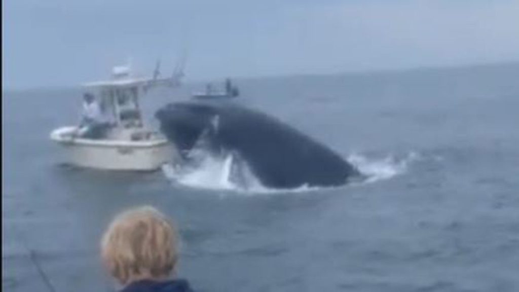 Breaching whale capsizes boat after landing on top of it off New Hampshire, shocking video shows