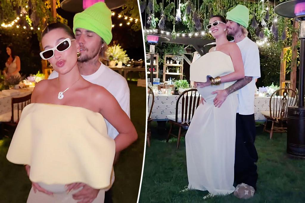 Justin Bieber cradles pregnant wife Hailey’s baby bump in video