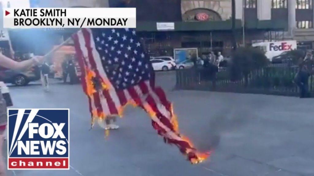 Anti-Israel protesters burn US flag, chant ‘death to America!’
