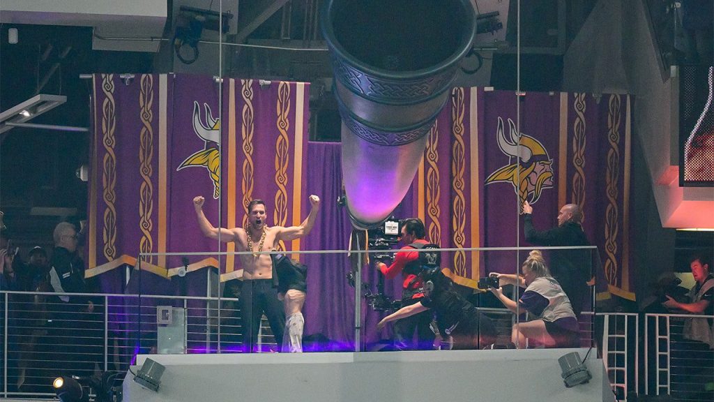 Shirtless Kirk Cousins, son lead ‘Skol’ chant before Vikings loss to Packers
