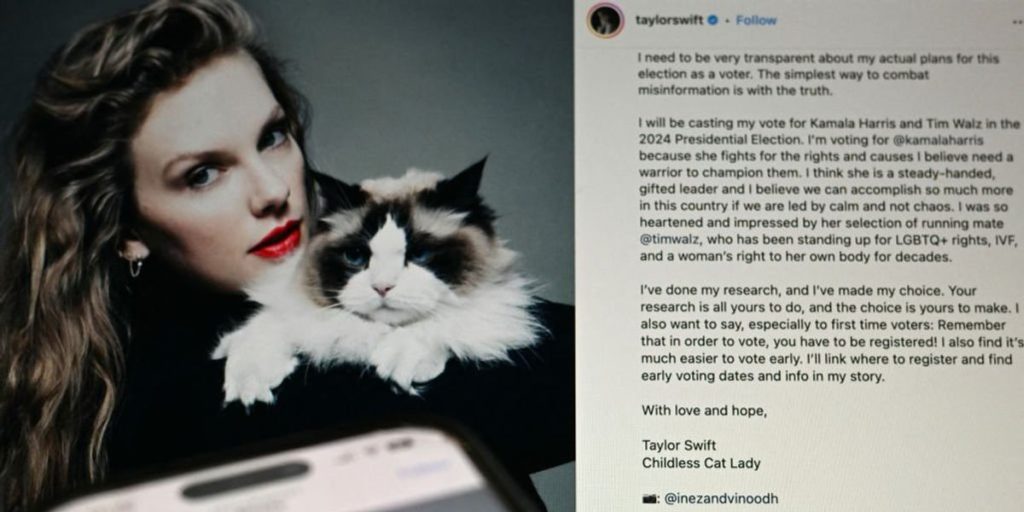 Taylor Swift embraces childless cat-lady status with Kamala pick