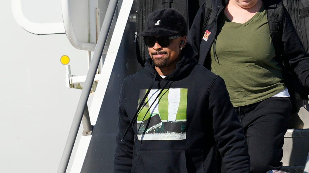 Eagles’ Jalen Hurts showcases controversial cleats upon arrival in New Orleans