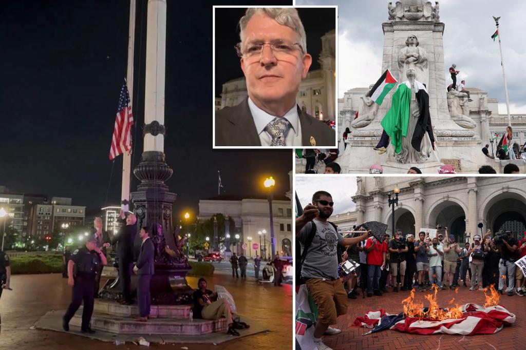 GOP congressmen replace American flags burned by anti-Israel agitators in DC