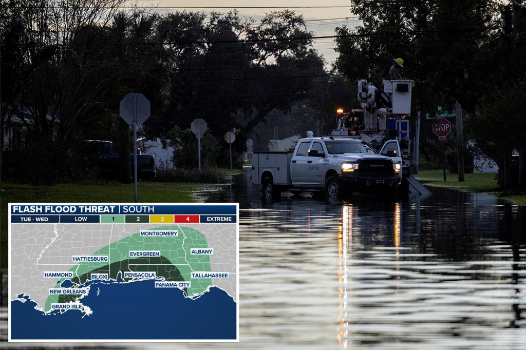 Dangerous flash flood potential covers part of Gulf Coast on Tuesday before Florida soaker