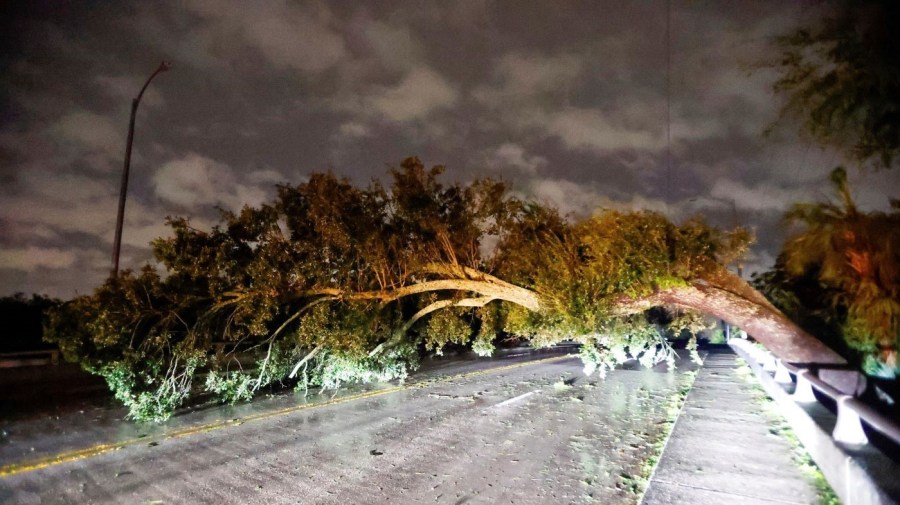 Tree falls on vehicle of FOX Weather reporting crew during Hurricane Milton