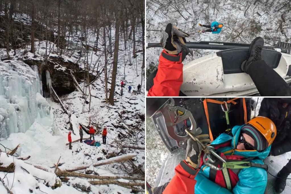 New York rescue crews pluck injured ice climber off ravine