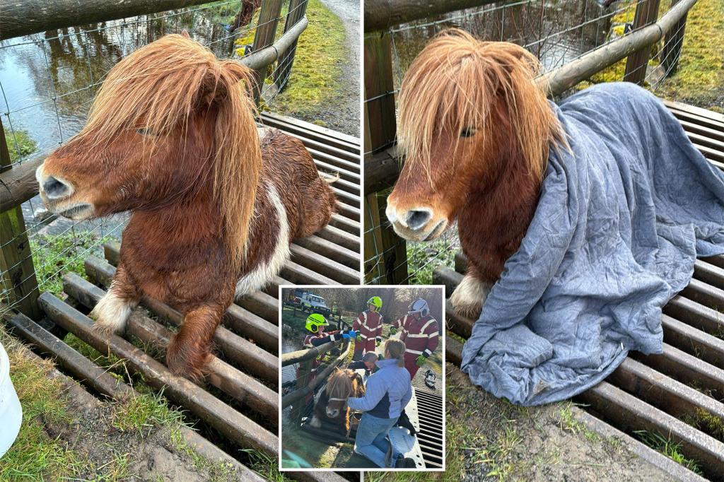 Social media users upset as Shetland pony is stuck in cattle grid for 4 hours with crews toiling