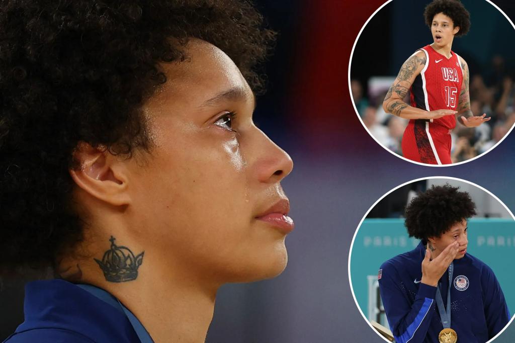 Brittney Griner cries during national anthem at Olympics