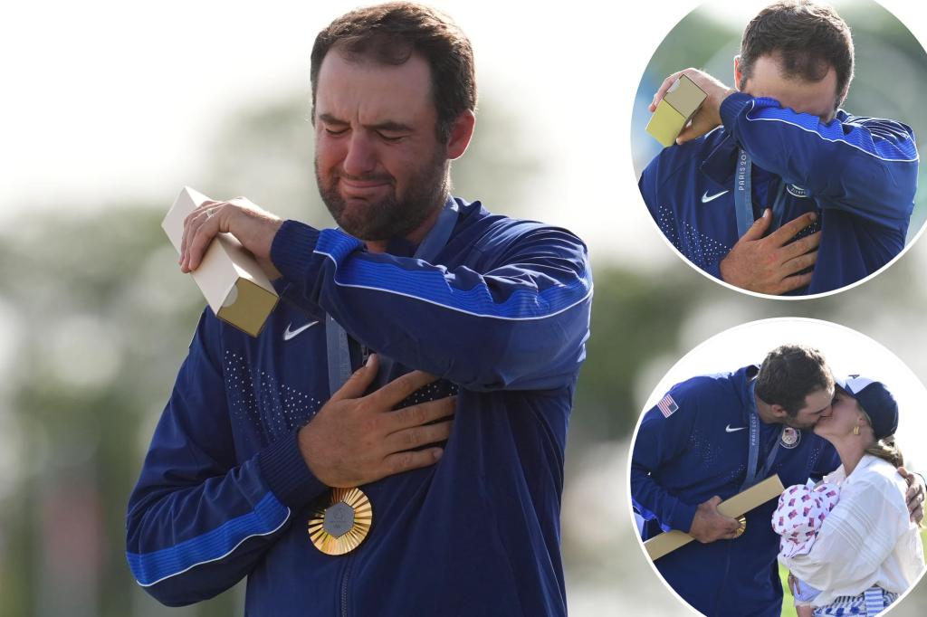 Scottie Scheffler cries during national anthem after Olympics win
