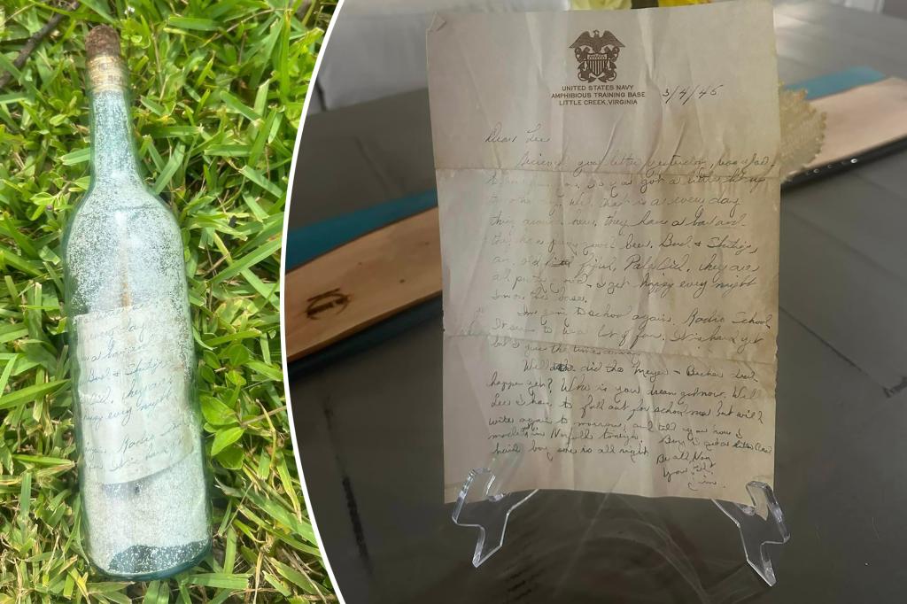 A Florida mother cleaning up trash after Hurricane Debby discovered a nearly 80-year-old message in a bottle, containing a shell casing that may have traveled more than 800 miles. The World War II-era note, bearing U.S. Navy letterhead from Amphibious Training Base Little Creek, Virginia, and dated March 4, 1945, was discovered this week by […]