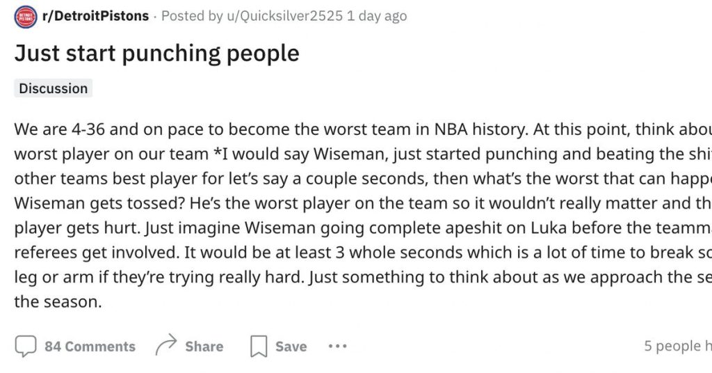 Pistons Reddit has descended into madness and suggested crime