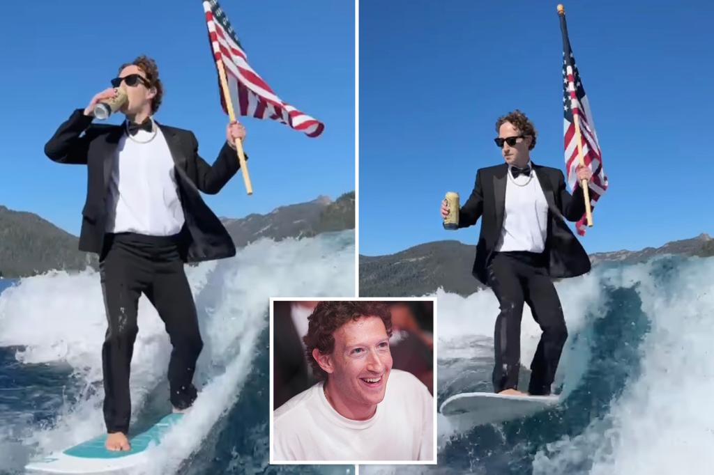 Mark Zuckerberg dons tux in July 4 surfing video while holding beer and US flag