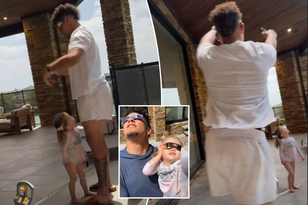 Patrick Mahomes runs to protect daughter during solar eclipse