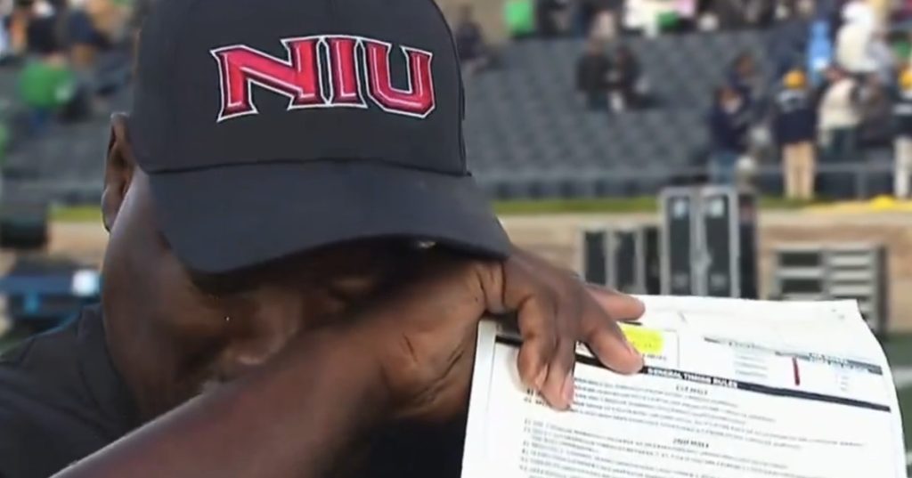 Northern Illinois coach’s raw emotion after Notre Dame upset shows best of college football