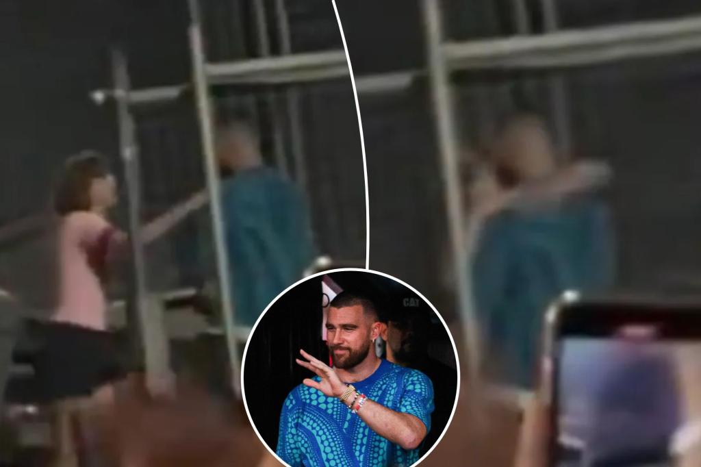 Taylor Swift ended the first of four shows on her Ellas tour in Sydney, Australia with a kiss. The 14-time Grammy Award winner and her boyfriend, Chiefs tight end Travis Kelce, shared a sweet hug Friday after a concert at Accor Stadium. As seen in a fan video on social media, Swift, 34, ran off […]
