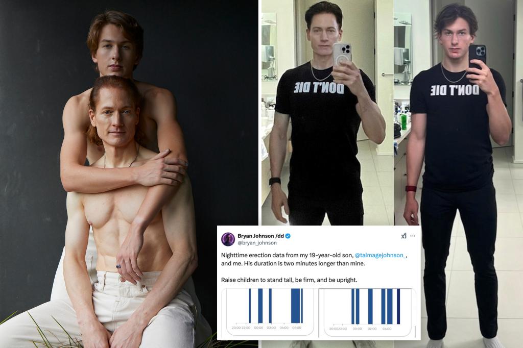 Anti-aging fanatic Brian Johnson is facing intense backlash over a “bizarre” and “gross” post revealing data tracking his teenage son's nocturnal erections. On Wednesday, the 47-year-old tech mogul posted a screenshot showing data from his and his 19-year-old son Talmage's night-time erection tracking machine. The data he posted included the number of erections, average duration, […]