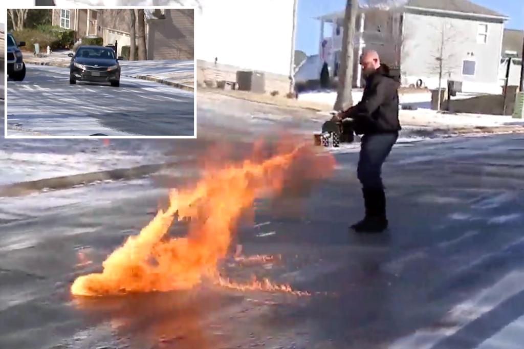 Wild video shows man using flamethrower to defrost frozen Georgia street