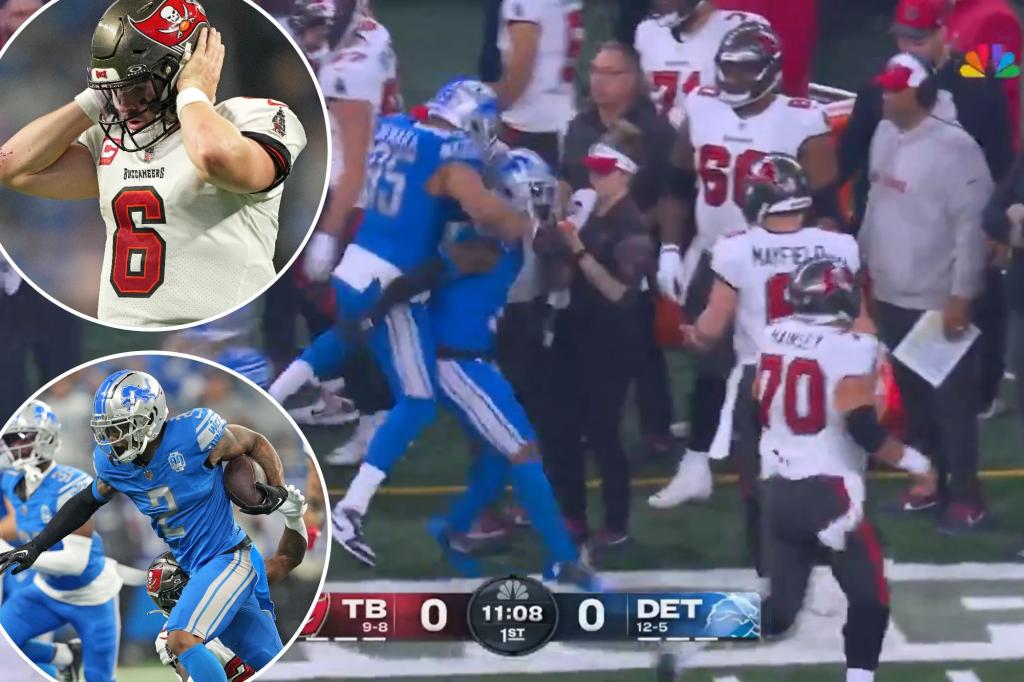 Lions’ CJ Gardner-Johnson taunts Bucs’ Baker Mayfield after interception during NFC divisional game