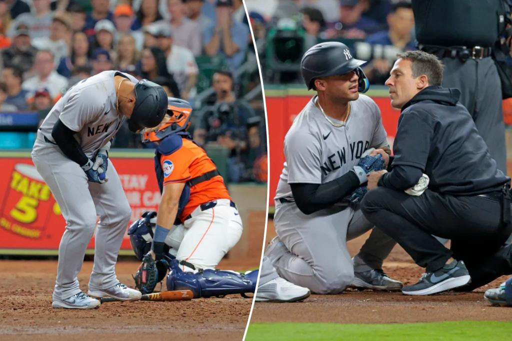 Yankees’ Gleyber Torres exits after getting hit by pitch