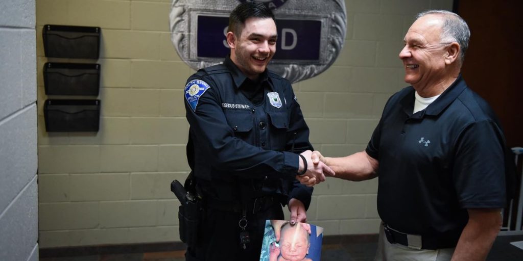 South Bend cop who helped an abandoned baby meets him 23 years later — all grown up and in a familiar uniform