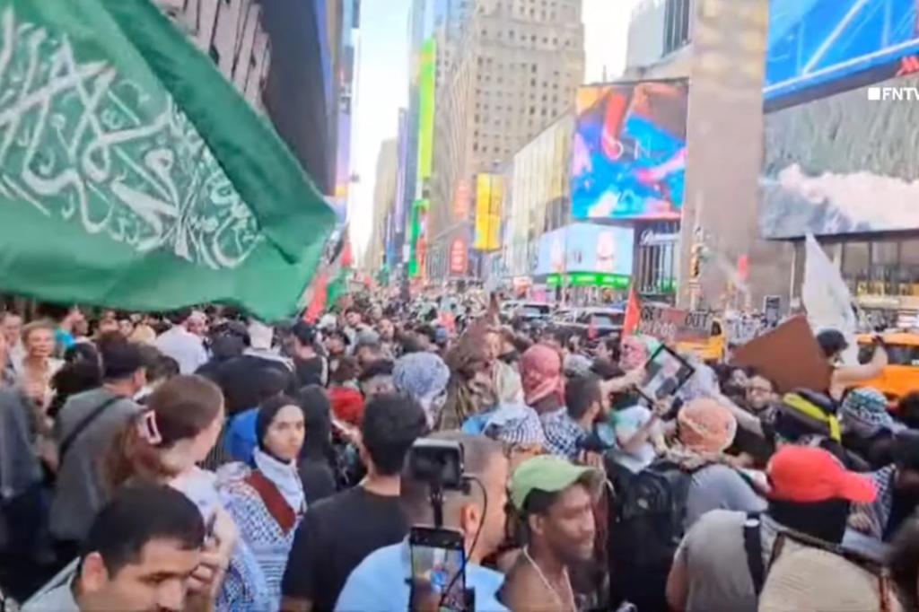 Anti-Israel protesters held up portraits of assassinated Hamas leader Ismail Haniyeh and waved pro-terror flags in a shocking demonstration in Times Square on Wednesday afternoon. The hate-filled crowd chanted “Free Palestine” and one protester held up a flag representing Hamas, while another held up a photo of Haniya. Anti-Israel protesters waved Hezbollah and Hamas flags […]