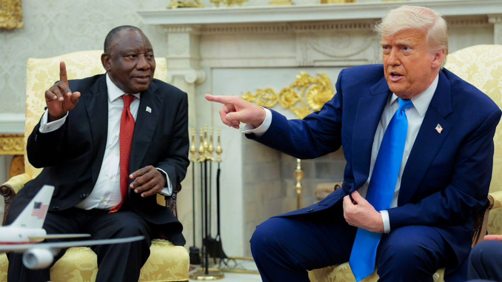 President Donald Trump criticizes NBC reporter for inquiring about the Qatari jet gift during a meeting with the South African president.