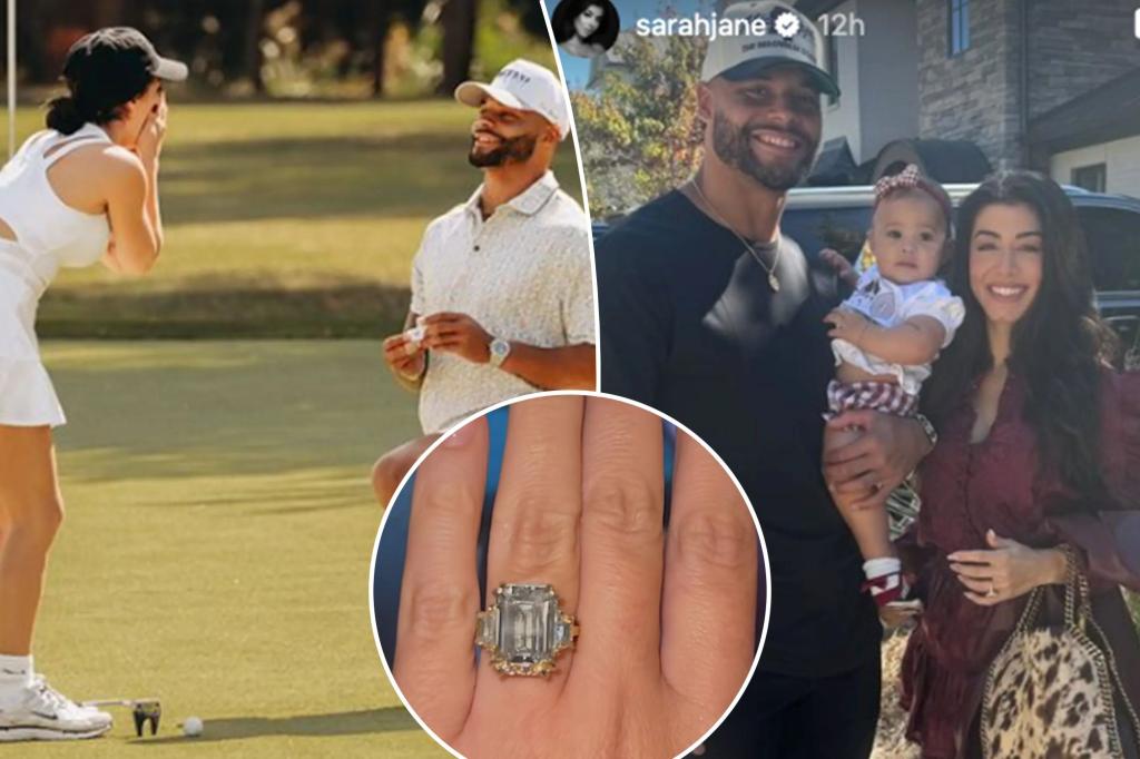 It was a golf trip that Dak Prescott and his girlfriend Sarah Jane Ramos will likely never forget. In announcing his engagement to Ramos on Friday, the Cowboys quarterback shared a photo on Instagram of an intimate moment where he got down on one knee on the green. “MINE FOREVER!!!!!” A best friend, partner, teammate, […]