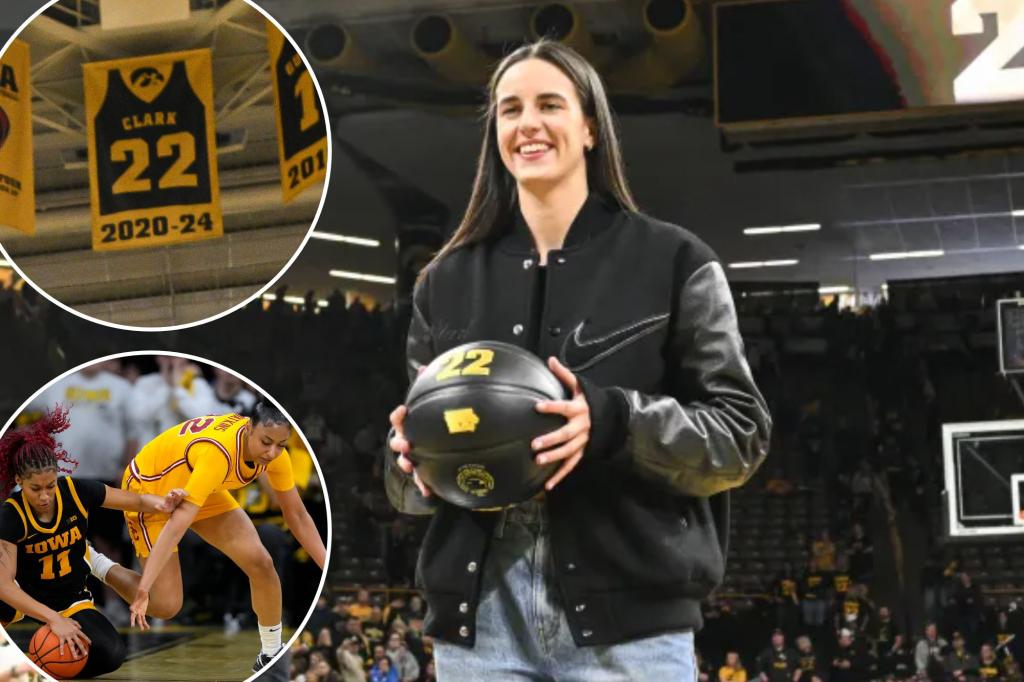 Caitlin Clark all smiles at jersey retirement after Iowa’s upset of No. 4 USC
