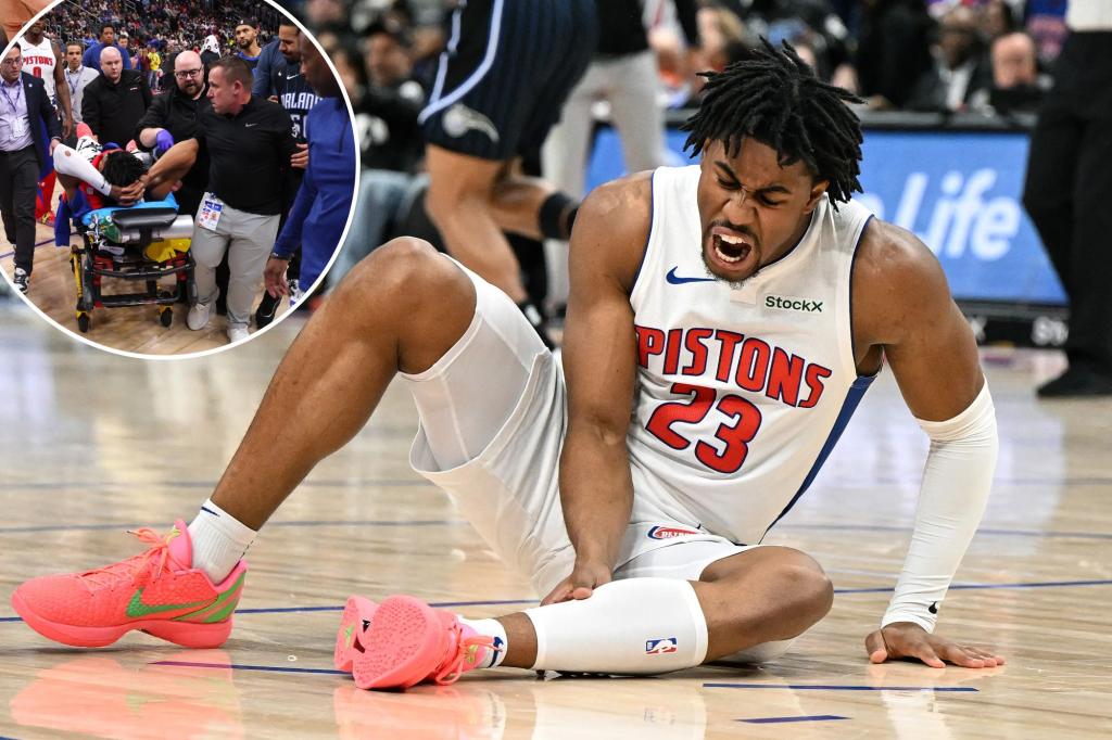 Pistons’ Jaden Ivey stretchered off after brutal leg injury