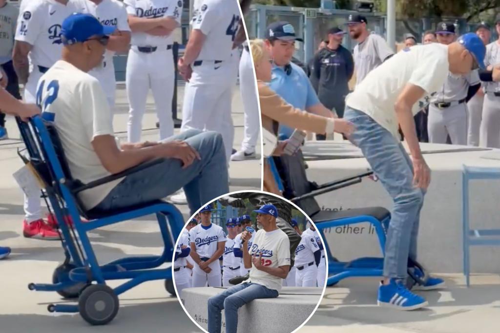 Kareem Abdul Jabber surprised several fans with a performance in Jackie Robinson’s Day tribute at Dodger Stadium in a wheelchair. The NBA’s second all-time best scorer has arrived at a statue celebrating Robinson being pushed into a blue wheelchair before taking a photo. A blonde woman in a beige coat rushed over and stabilized as […]