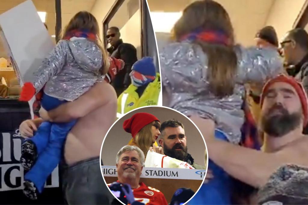 Jason Kelce carries young Bills fan to see Taylor Swift in Chiefs win