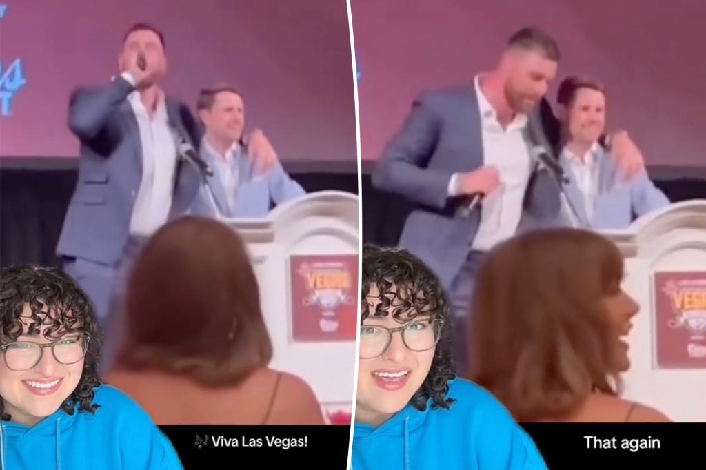Taylor Swift cringes at Travis Kelce shouting ‘Viva Las Vegas’ again at Patrick Mahomes Gala: lip reader