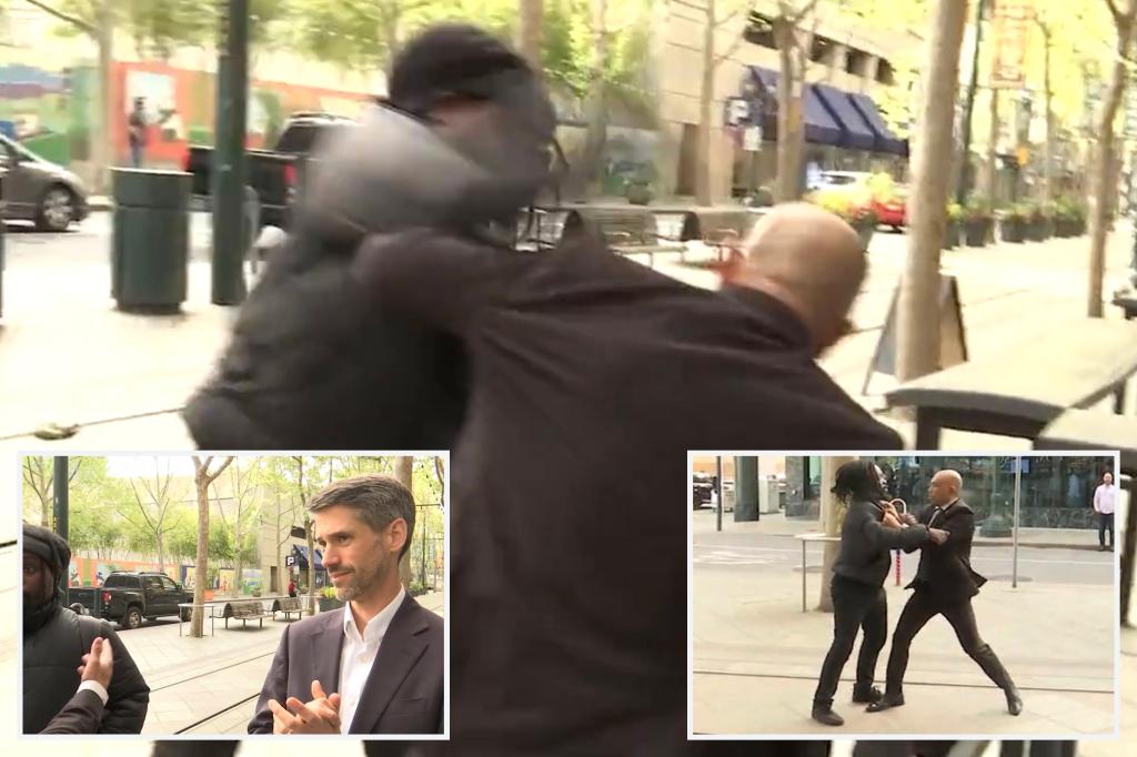Guard for San Jose Mayor Matt Mahan and passerby get into fight during TV interview